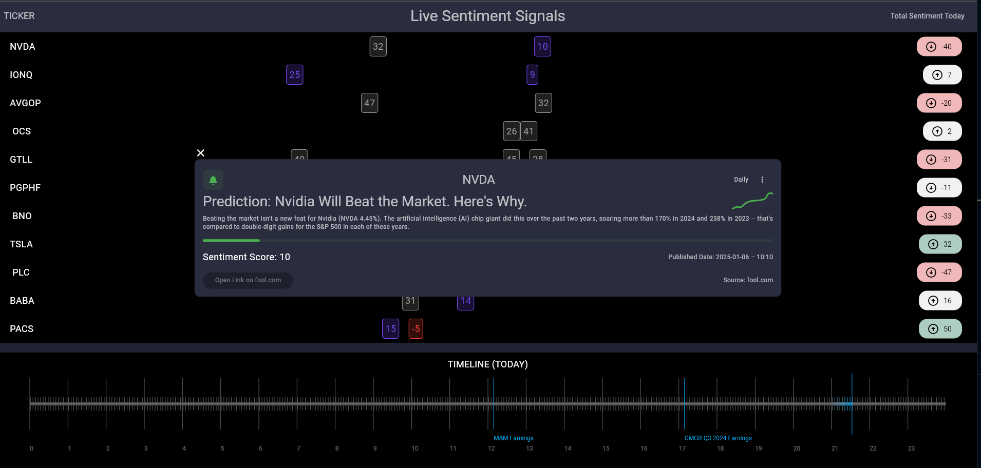 As the signals are based on news, you can dig into the articles with a click. No more jumping between newssites and scrolling.